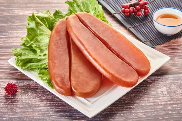 烏魚腱是烏魚的胃,一尾烏魚只有一個胃,所以價格也高些,現在正是季節。烏魚全身都是金,新鮮的烏魚腱,跟曬乾的烏魚腱有完全不同的風味,爽脆的烏魚腱搭配上醬料烤一烤或是用蒜苗、椒鹽等爆香料快炒下酒、配菜都適宜
